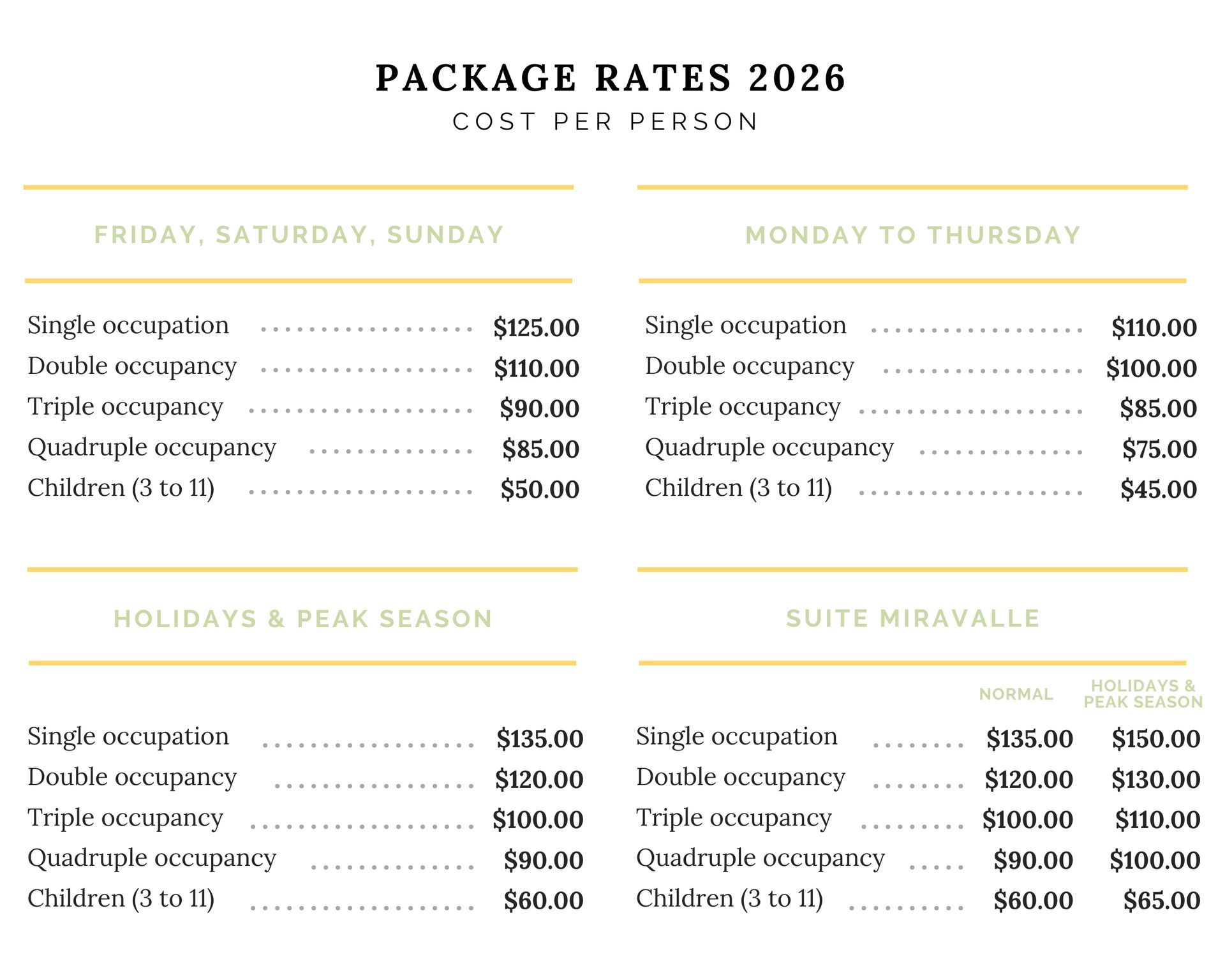 Packages with Accommodation & Food